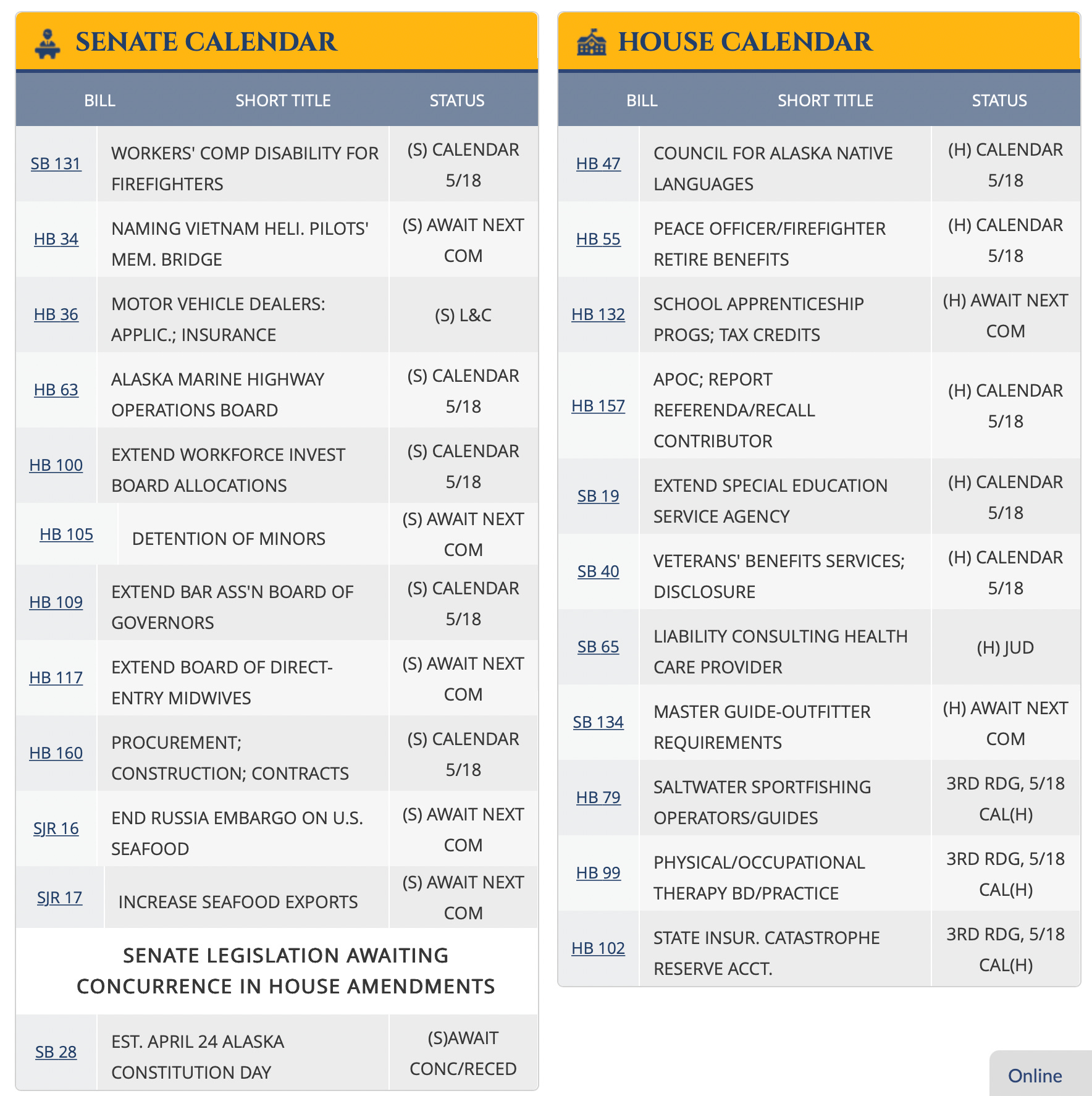 What’s happening: A special session called by the governor limits the bills legislators can get into. With it limited to the budget, the PFD and his proposed constitutional amendment on the PFD, legislators are spending the last few days of the regular session pushing through as many bills as possible (just look at the floor agenda below). Because of the state of the operating budget, though, legislators are hampered on just how quickly they can move these bills. Typically, they’d be under the 24-rule by now that allows them to hold hearings with far shorter public notice but that only goes into effect when the operating budget is in the conference committee. But it’s still in the Senate Finance Committee, an amendment-filled floor debate away from passing the Senate.